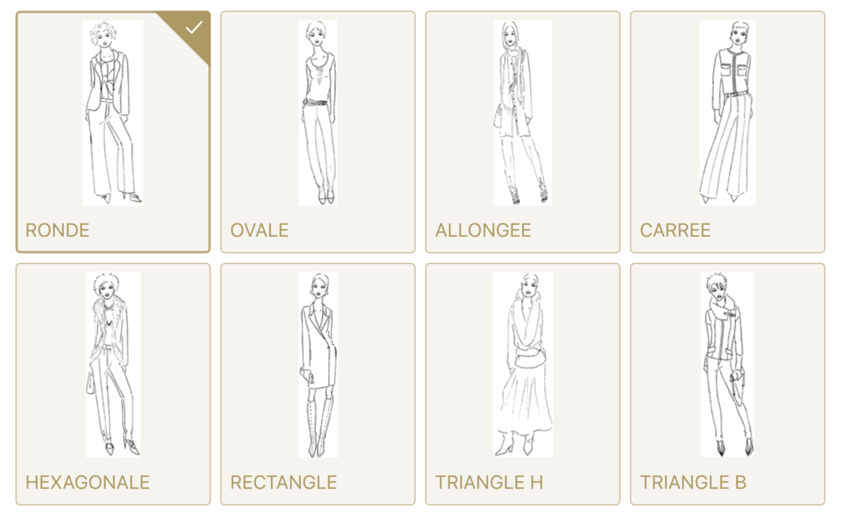 Formulaire interactif : répondez à une série de questions simples pour décrire les principaux éléments du visage et de la silhouette.
